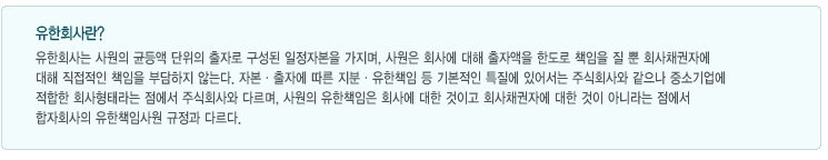 ¼Â°, ¼Ò±Ô¸ðȸ»ç - ¹ýÀûÀ¸·Î À¯ÇÑȸ»ç´Â »ç¿øÀÇ ¼ö¸¦ 50¸í ÀÌÇÏ·Î ±ÔÁ¤Çϰí ÀÖÀ¸¸ç, ÁöºÐÀÇ ¾çµµ¸¦ Á¦ÇÑÇϰí ÀÖ´Ù.